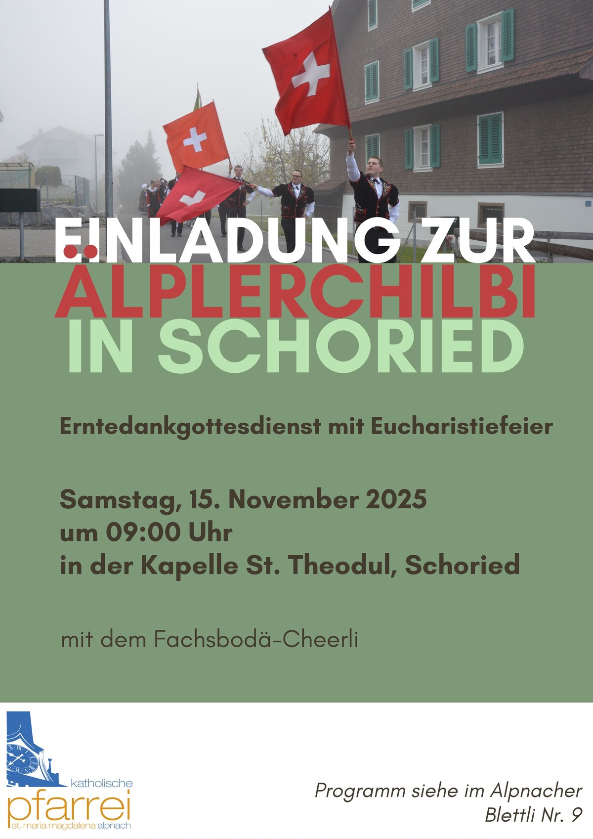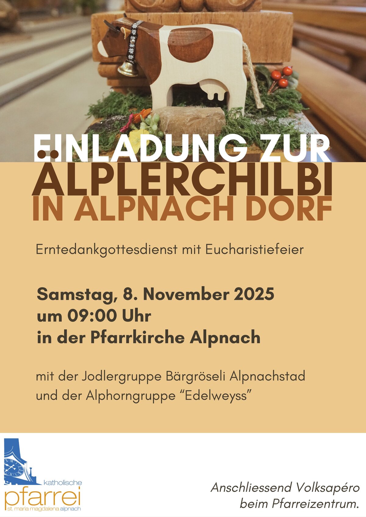 Wir freuen uns auf die beiden Alpnacher Älplerchilbi-Feierlichkeiten und sagen Gott Dank für den vergangen Alpsommer und all die guten Gaben, die wir seiner Schöpfung und unserer Hände Arbeit verdanken.